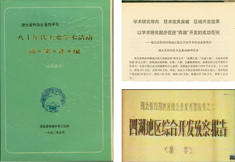 10年间,为四湖地区综合开发共提交了论文1100多篇、专著6本,参加国际学术交流11人次,形成了重要的研究报告,受到了省委、省政府的高度重视,把综合治理四湖“水袋子”问题提到了重要议事日程。专家们形成的四湖地区综合开发的战略思想,成为全省指导四湖地区综合开发的纲领。在科技的驱动下,经过近十年的建设,四湖地区成为了我国著名的综合型农轻结合的商品生产基地。1990年,中央电视台为此播放了录相片,新华社编发了内参,《人民日报》等主流媒体多次进行了报道。