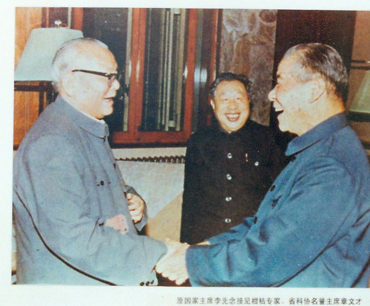 1985年,国家主席李先念接见湖北省科协第三届委员会名誉主席、著名柑桔专家、华中农业大学教授章文才。