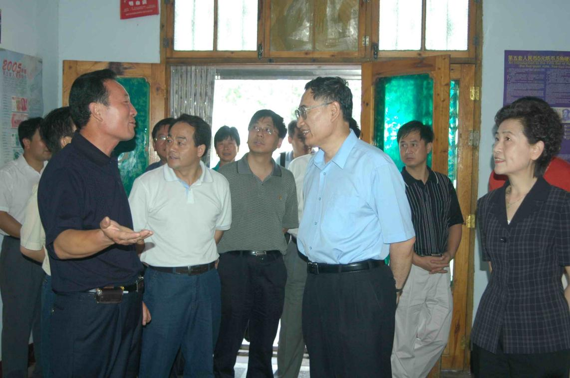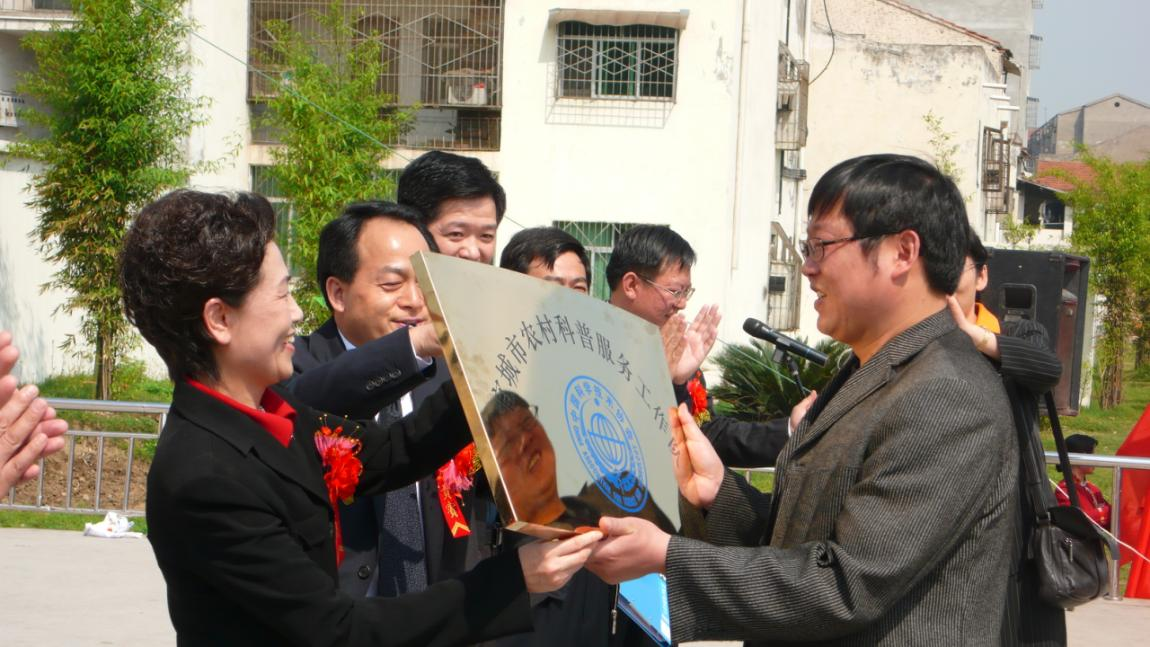 | 2007年7月,中国科协副主席、党组副书记、书记处书记齐让,省科协党组书记、常务副主席曲颖等领导参观荣河村科普宣传员龚大德的科技文化室 | 2007年4月,省科协党组书记、常务副主席曲颖等领导为宜城农村科普服务工作队授牌 |