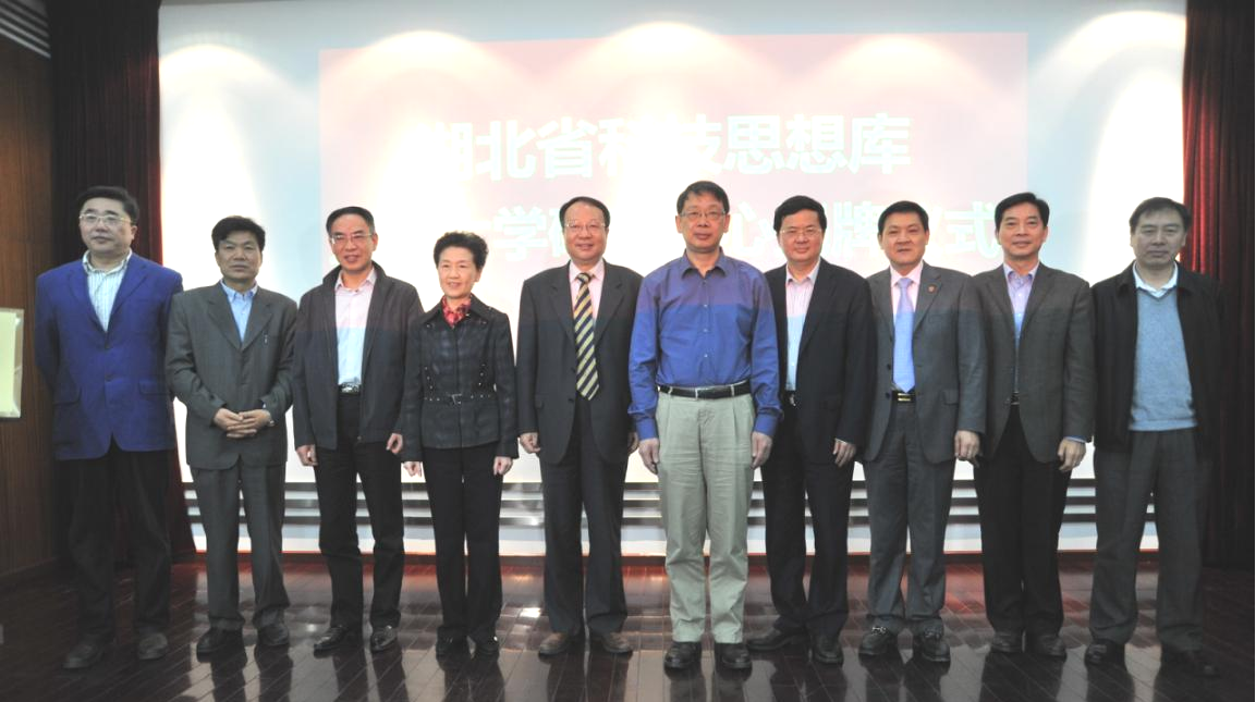 | 2012年4月17日,由湖北省科协和武汉大学联合成立的“湖北省科技思想库武汉大学研究中心”在武汉大学揭牌 | 参与揭牌仪式合影 |