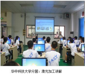 | 省科协党组成员、副主席朱瑛出席武汉大学的开营式为营员授旗 | 华中科技大学分营:激光加工讲解 |
