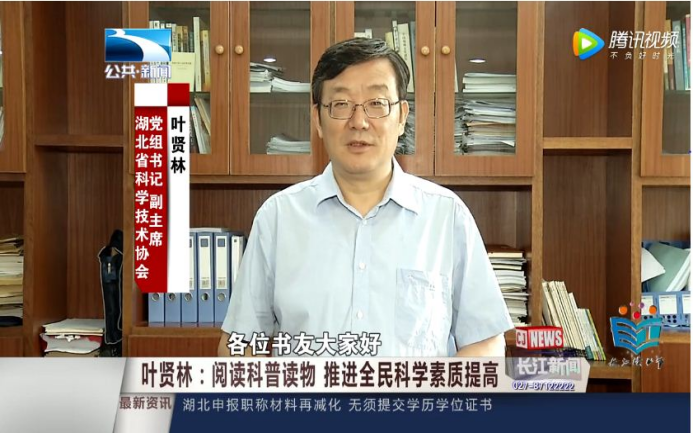 2018年8月,省科协党组书记、副主席叶贤林作客湖北电视台《公共新闻》频道[领读者说]栏目,向大众导读《中国公民科学素质系列读本》丛书中的《中学生科学素质读本》一书,宣传科普文化,推进全民科学素质提高。