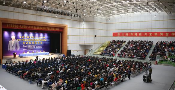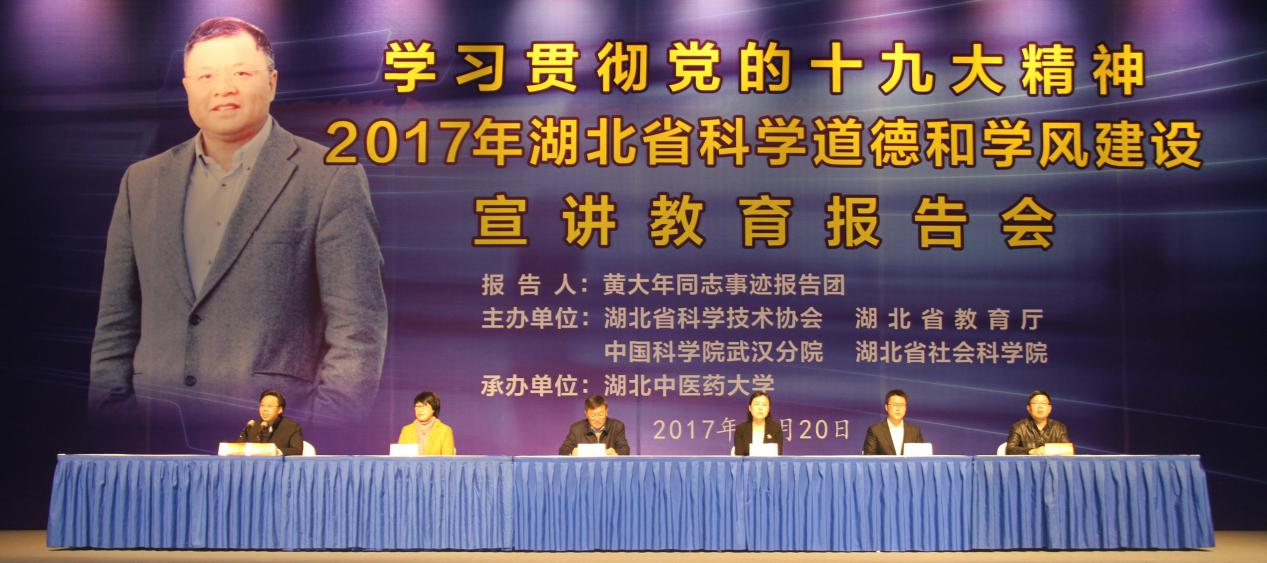 2017年11月20日,由省科协、省教育厅、中科院武汉分院、省社科院联合主办,湖北中医药大学承办的“学习贯彻党的十九大精神——2017年湖北省科学道德和学风建设宣讲教育报告会”在湖北中医药大学黄家湖校区体育馆隆重举行,该活动自2009年启动至今已开展了8年。省科协党组书记、副主席叶贤林出席会议并讲话,湖北中医药大学校长吕文亮等领导出席会议。来自在汉28所高校和科研院所分管研究生工作的负责同志、研究生代表、新入职青年教师和新上岗研究生导师共1700余人现场聆听报告会。