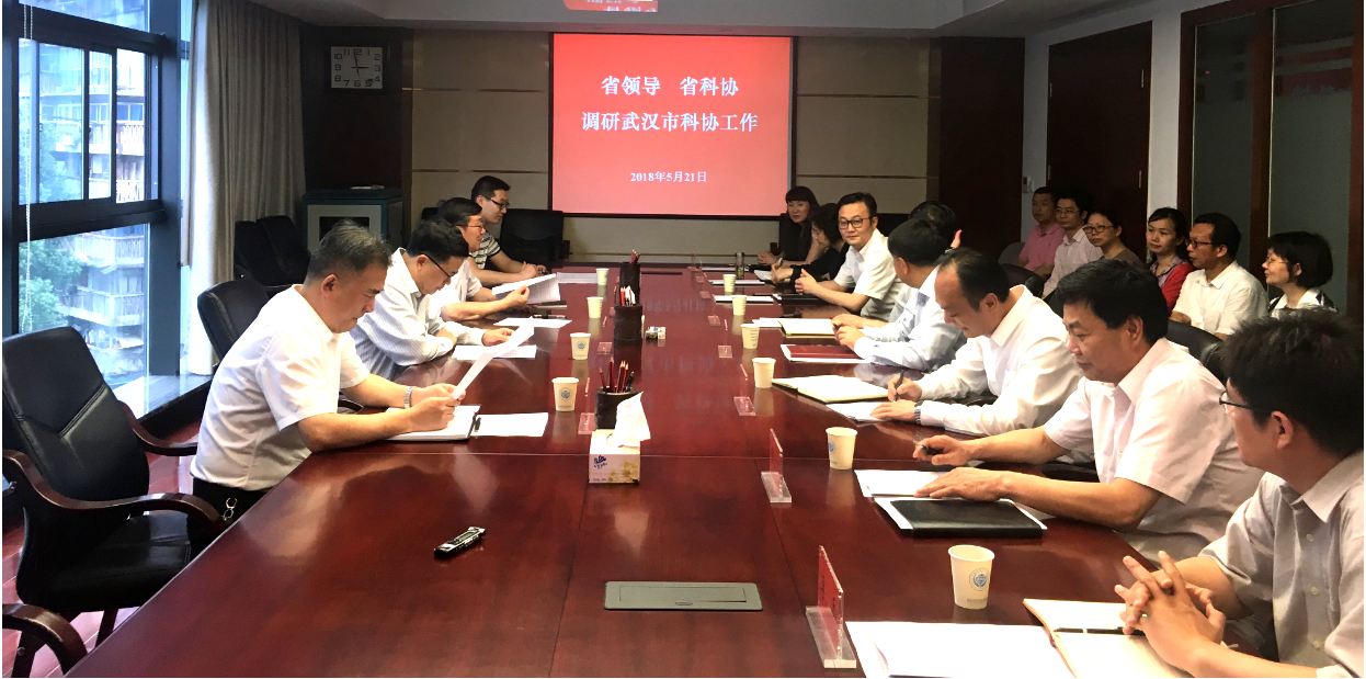 2018年5月21日,在“全国科技工作者日”来临之际,省科协主席郭生练率队到武汉市科协召开座谈会,走访慰问优秀科技工作者。省科协党组书记、副主席叶贤林主持座谈会。武汉市委常委、政法委书记曹裕江,市科协党组书记、副主席陈光勇等参加座谈。省科协党组成员、秘书长孙击翔参加了座谈和走访慰问。